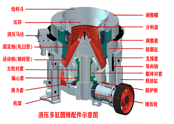 轧臼壁是和破碎壁是在圆锥破中一起运转工作对物料进行破碎的主要部件,因为是固定不动的所以又叫做定锥。圆锥破在运作的时候,破碎壁就会做轨迹运动,和轧臼壁的距离时而靠近时而远离,达到挤压破碎物料,部分物料会从开边排料口排出。轧臼壁有U形螺钉把在调整环上,两者之间注入锌合金,使之紧密结合,新安装或更换轧臼壁时,在工作6~8小时后,应检查 其紧固情况,并再次拧紧U形螺钉。