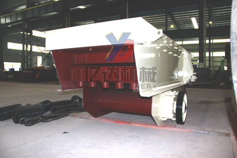 在砂石生产线中可为破碎机连续均匀地喂料避免破碎机受料口的堵塞。机是利用振动器中的偏心块旋转产生离心力,使筛厢、振动器等可动部分作强制的连续的圆或近似圆的运动。物料则随筛厢在倾斜的筛面上作连续的抛掷运动,并连续均匀地将物料送至受料口内。